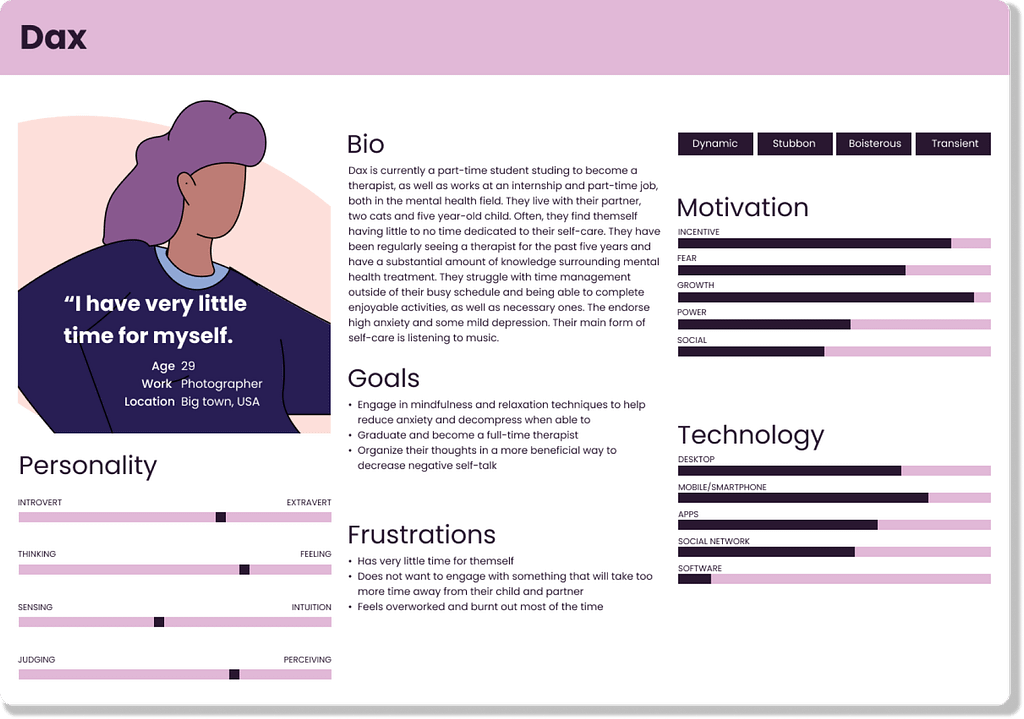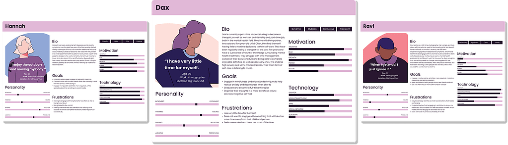 Based off of user interviews I created personas to continue to figure out the headspace of potential users. I created goals for the app including: